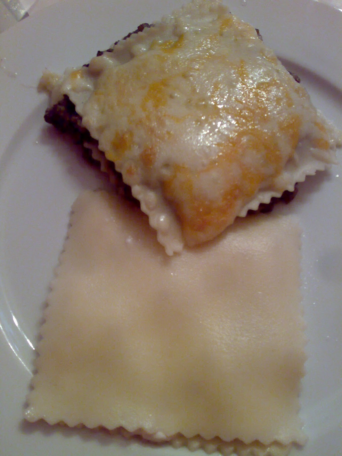 Lasaña fría de crema de queso y salmón versus lasaña templada de morcilla con crema de cebolla al brandy gratinada con tres quesos.